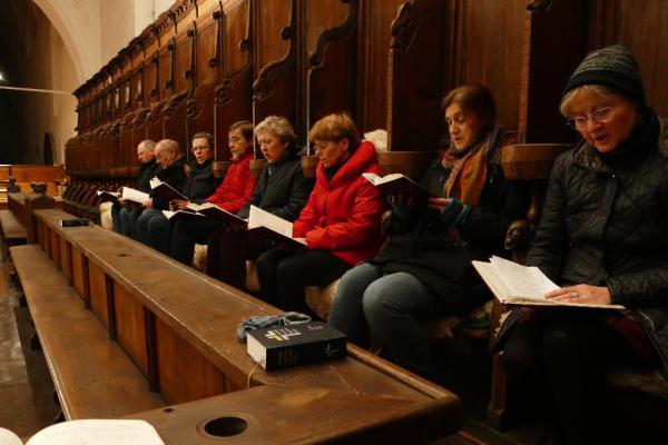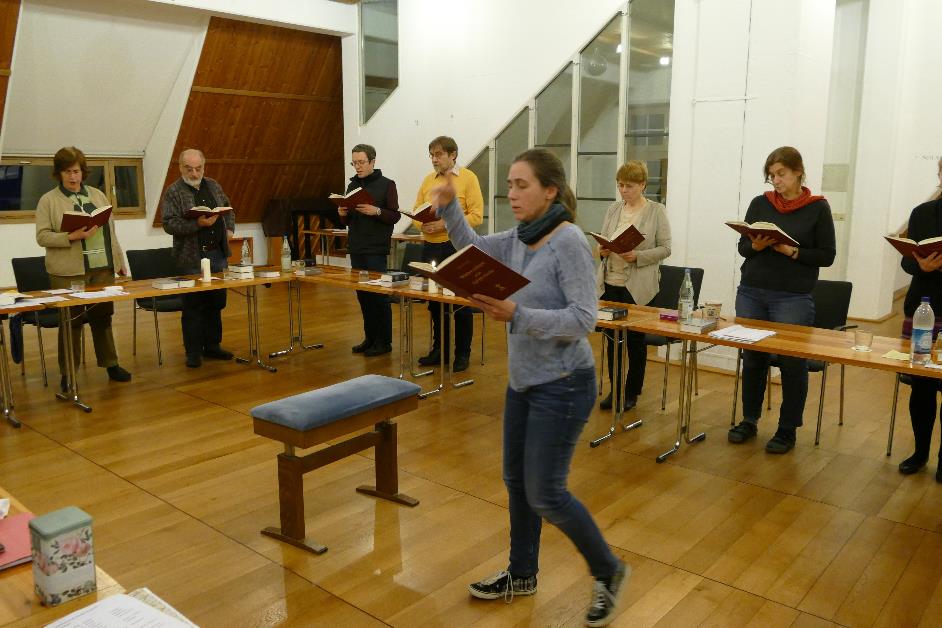 Der Klang und die Stimmung während der Messe und der Stundengebete war wunderbar ruhig und recht ausgewogen. Besonders lebendig wurde der Gesang, wenn es dem Konvent gelang, zum ersten Mal gemeinsam einzelne Passagen auswendig und losgelöst von den schwarzen Notenzeichen zu singen. Zu verdanken hatte das der Konvent der souveränen Art der gut vorbereiteten Kantorin Elisabeth Hofmann, die nicht nur die Gesänge einübte sondern auch für eine solide Einführung der Neuen im Konvent sorgte.